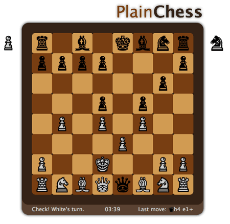 PlainChess ist voll funktionsfähig, beherrscht auch Rochade und Bauernbeförderung und erkennt Schachsituationen usw. Es fokussiert sich auf das eigentliche Spiel. Und ein Blick in Firebug/Webinspektor macht richtig Laune!