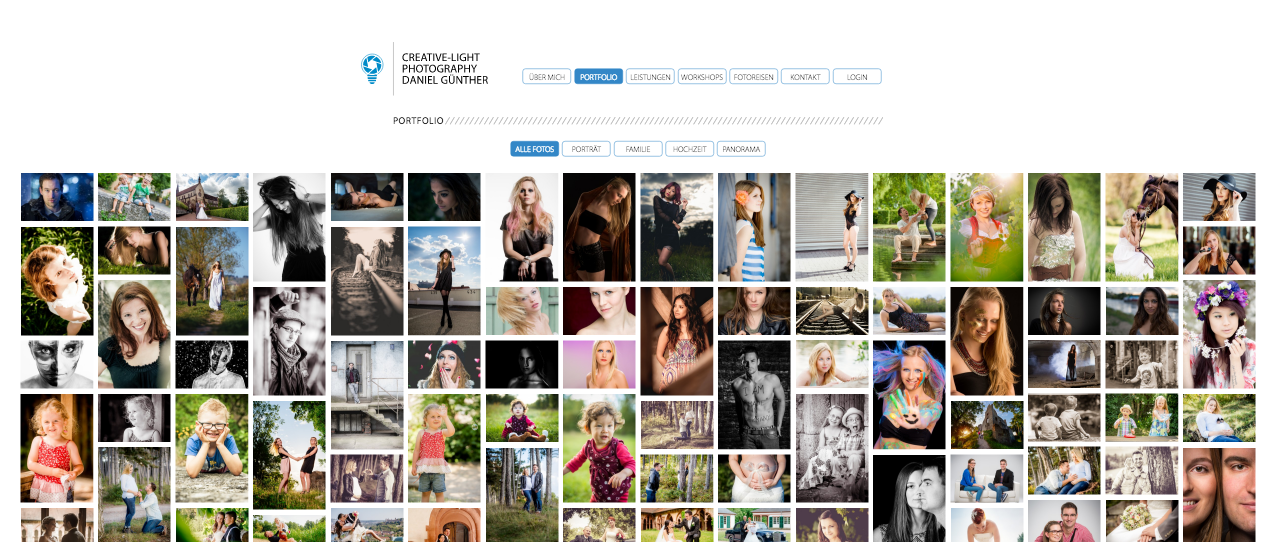 Wer hingegen ausschließlich Inhalte in Bildform zu bieten hat, kann gerne einmal mit der vollen Breite experimentieren, wie beispielsweise Fotografen: