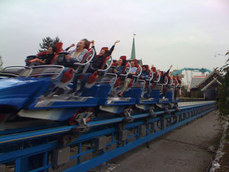 Echte Stammleser wissen vielleicht, dass ich eine Schwäche für Freizeitparks im Allgemeinen und Achterbahnfahrten im Speziellen habe. So verwundert es nicht, dass ich mir dieses Wochenende einmal in Ruhe die diesjährige Neuanschaffung im Europapark angeschaut habe: Blue Fire. (Im Europapark kommt jedes Jahr eine große Attraktion (von gemischter Attraktivität – »Atlantica Supergähn«) hinzu. Blue Fire ist ein neuer »Mega-Coaster« mit initialer Beschleunigung von 0 auf 100 in 2,5 Sekunden, einem Looping und drei Korkenziehern. Nicht übel. Und nach zwei Fahrten (eine davon in der ersten Reihe) kann ich ihr attestieren, die zweitbeste Achterbahn Deutschlands zu sein. Hier ein Symbol-Video (welches ab 00:20 auf der rechten Bildhälfte eindrucksvoll die Wirkung der Schwerkraft demonstriert):