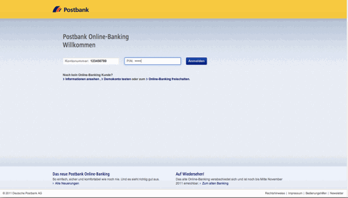 Die Postbank hat den Bogen seit einigen Wochen raus. Bereits die Anmeldemaske erinnert an eine aufgehübschte Version der Google-Suchmaske:
