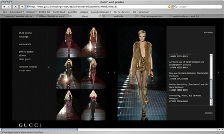Man kann es natürlich auch übertreiben mit dem JavaScript. Gucci hat sich nun eine Flash-Website geleistet, die ohne Flash, dafür komplett mit JavaScript umgesetzt wurde. Mit all den Scheußlichkeiten, die man sich so vorstellen kann: