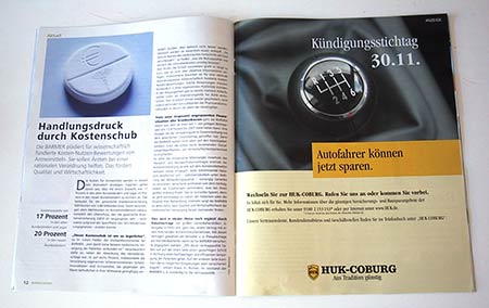 Das kann passieren, wenn man die Anzeigenseiten erst nach dem Layout der redaktionellen Seiten zusammenfließen lässt. Gefunden im Barmer Magazin. Nicht schlimm, ist mir nur sofort ins Auge gesprungen und da ich heut’ noch nichts gebloggt habe …
