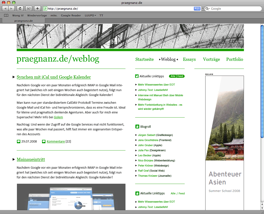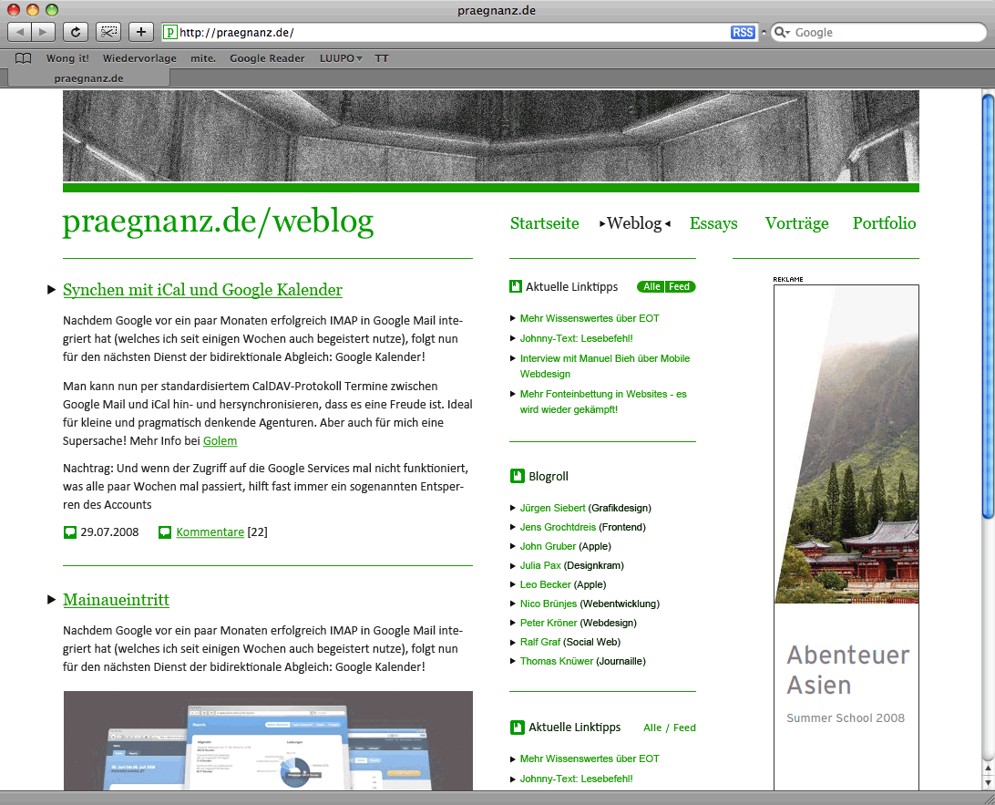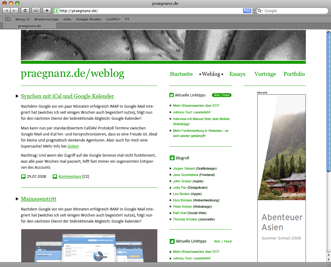 Vor etwa eineinhalb Jahren habe ich schon einmal einen großen praegnanz.de-Relaunch geplant, aus dem jedoch nichts wurde, weil – nun ja, weil das Layout mir einfach zu langweilig war: