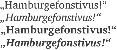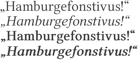 Unglaubliche sechs Schnitte spendiert Freefont-Musterknabe Joe Buivenga seiner Delicious, das ist für einen freien Font der bisherige Rekord! Neben den echten Kapitälchen fällt vor allem die Italic-Variante ins Auge mit ihren teils gewagt geformten Buchstaben – köstlich!