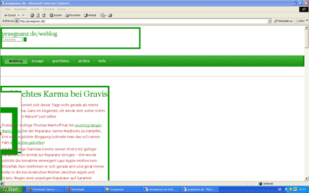 Von denen also, die offenbar wenig technisch versiert sind, weil sie überhaupt den Explorer verwenden, sind diejenigen mit alten Versionen ganz grandios in der Minderheit. Das ist toll, denn auf dem Internet Explorer 5 ist praegnanz.de nicht gerade ein Fest der Schönheit: