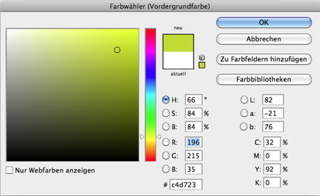 Hierzu startet man den »AppleScript-Editor« (Programme/Dienstleistungsprogramme) und schreibt in das Fenster einfach die zwei Worte choose color. Das ganze muss dann nur noch als Programm abgespeichert werden.