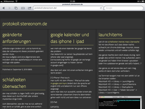Echt jetzt, das ist super! Keine instabilen SVG-Krückenlösungen mehr – mit der kommenden Version von iOS 4.2 lässt sich, wie ich im Internet gelesen habe, zumindest auf dem iPad die Webfont-Technologie mit offenen Fontformaten wie .otf nutzen.