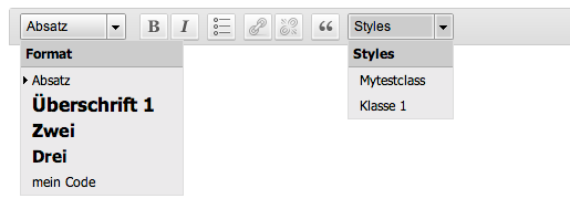 Anschließend ist die Auswahl auf die einsetzbaren (und gestylten) Dinge beschränkt und sogar Überschrift, Absatz, … sind definierbar.