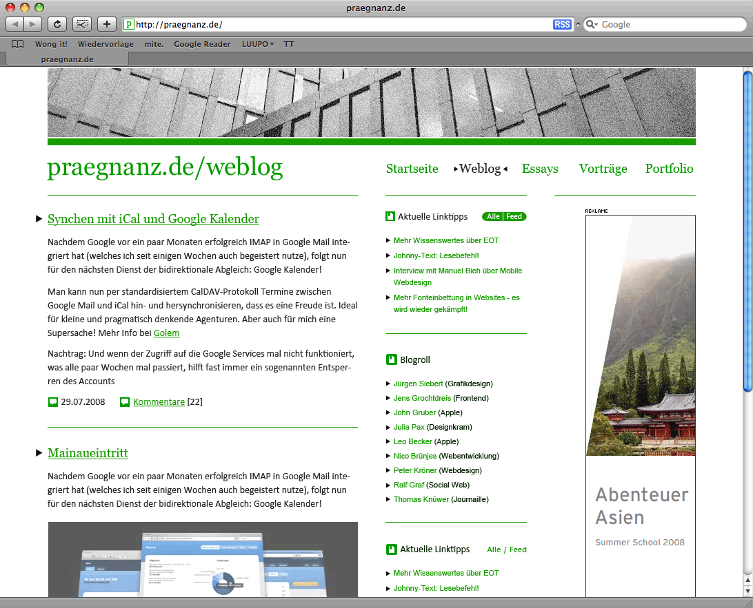 Vor etwa eineinhalb Jahren habe ich schon einmal einen großen praegnanz.de-Relaunch geplant, aus dem jedoch nichts wurde, weil – nun ja, weil das Layout mir einfach zu langweilig war: